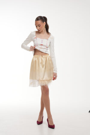 Silk Skirt – Vanilla with Feather Detail.