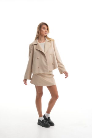 • A blazer with a fitted silhouette. Single-breasted, fastened with buttons, with button details on the sleeves.