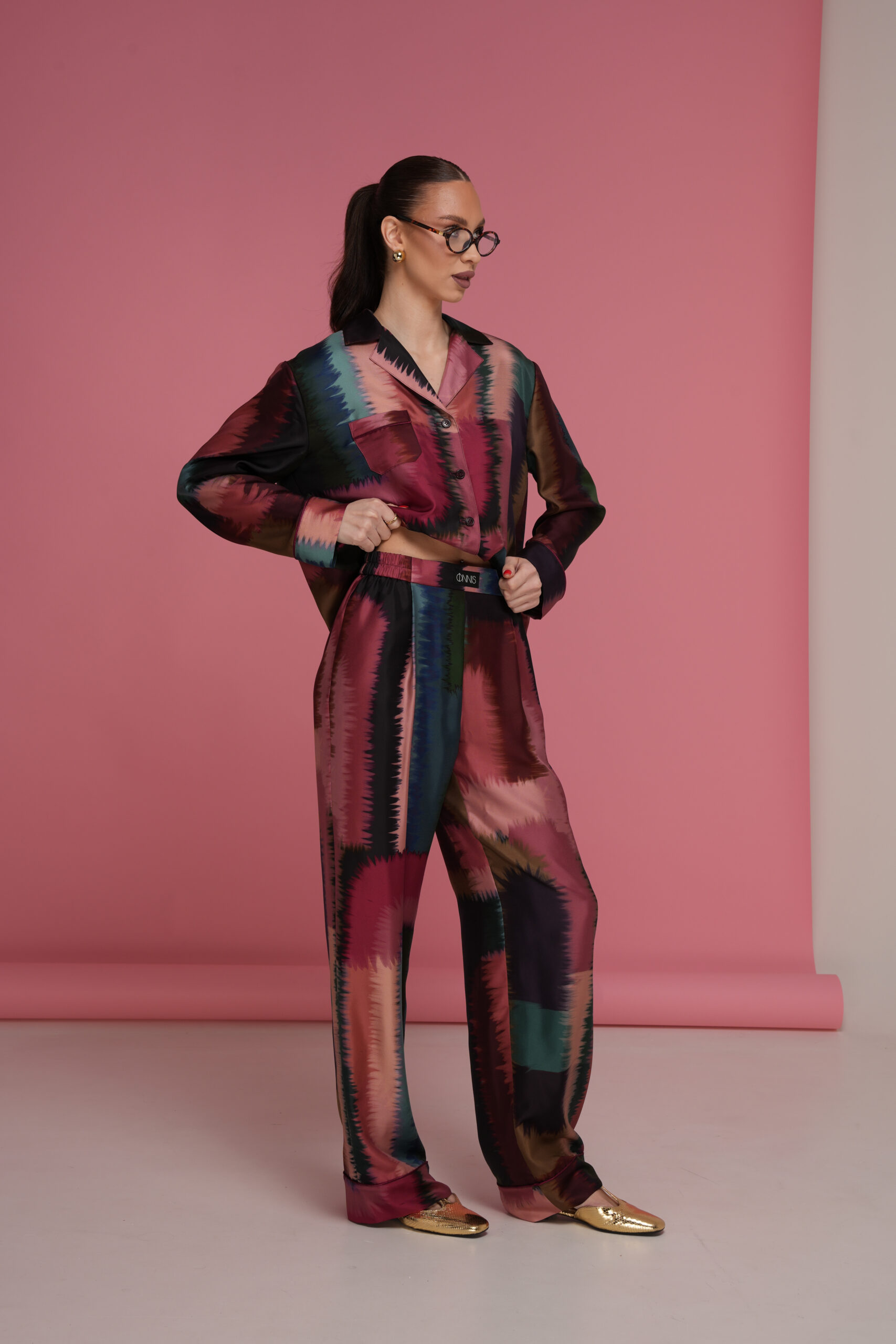 - Elegant trousers crafted from soft twill silk, designed for comfort and style. Featuring side seam pockets for practicality, an elastic waistband with brand logo, and a decorative trim at the hem for a refined finish. Perfect for a sophisticated yet relaxed look.
