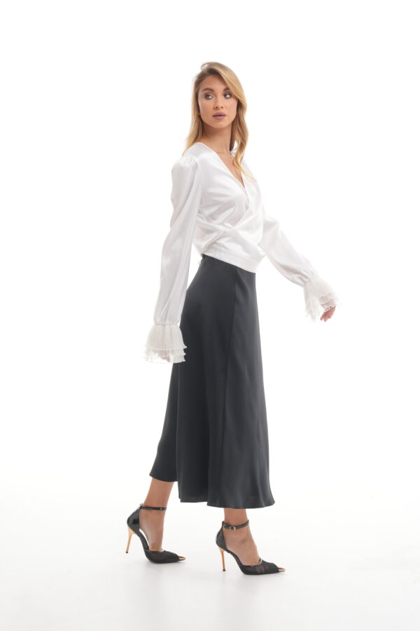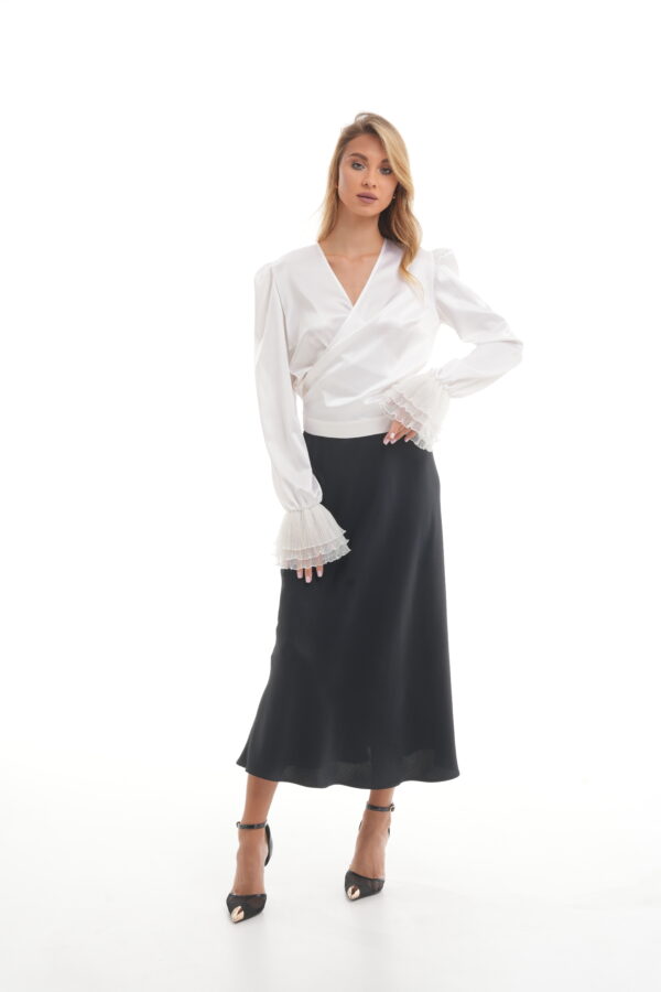 • Midi skirt, includes an elasticated waistband. Тhe skirt is sewn on an oblique.