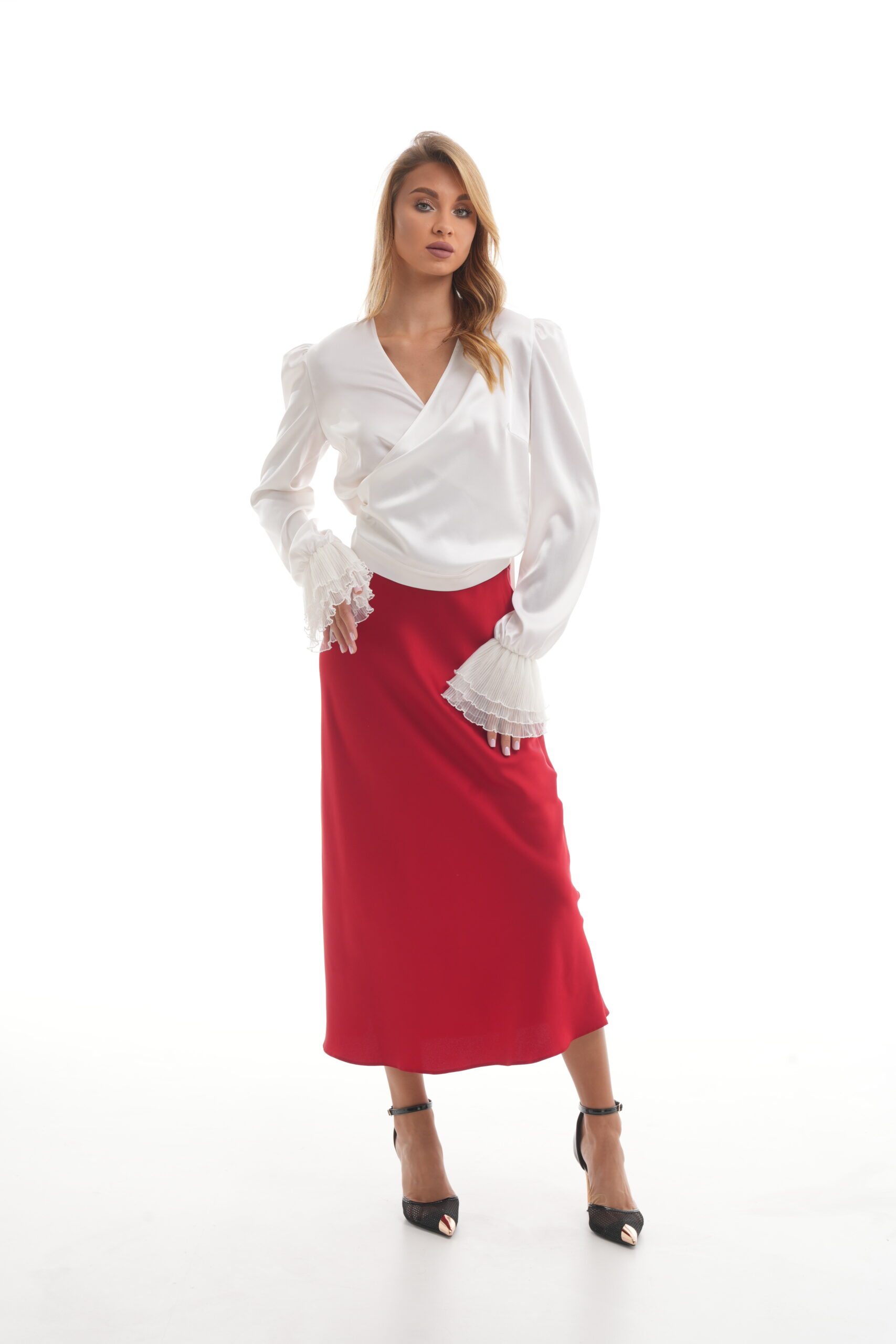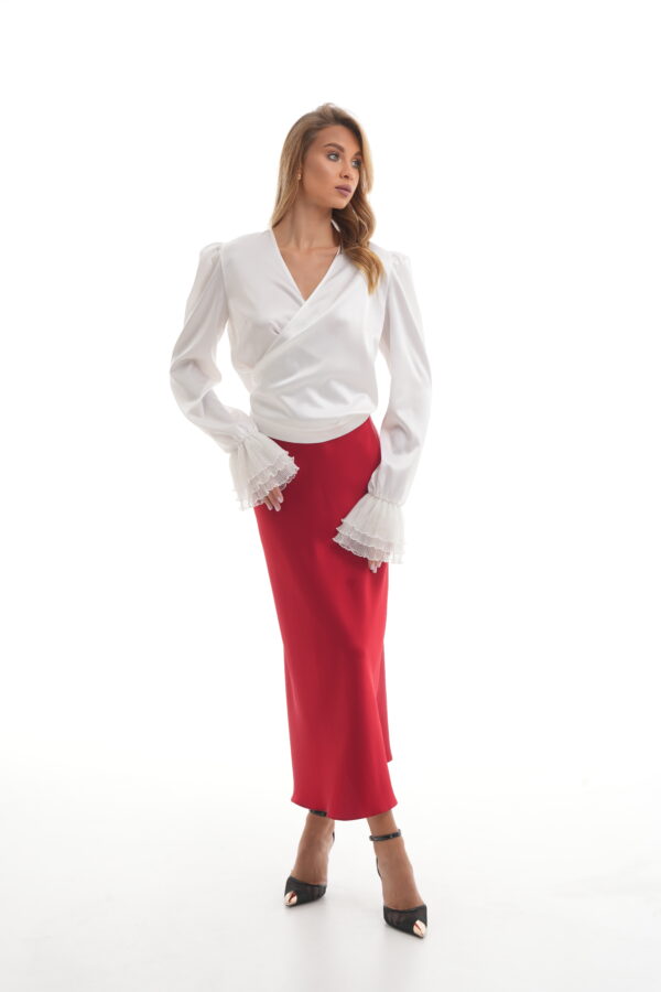 • Midi skirt, includes an elasticated waistband. Тhe skirt is sewn on an oblique.
